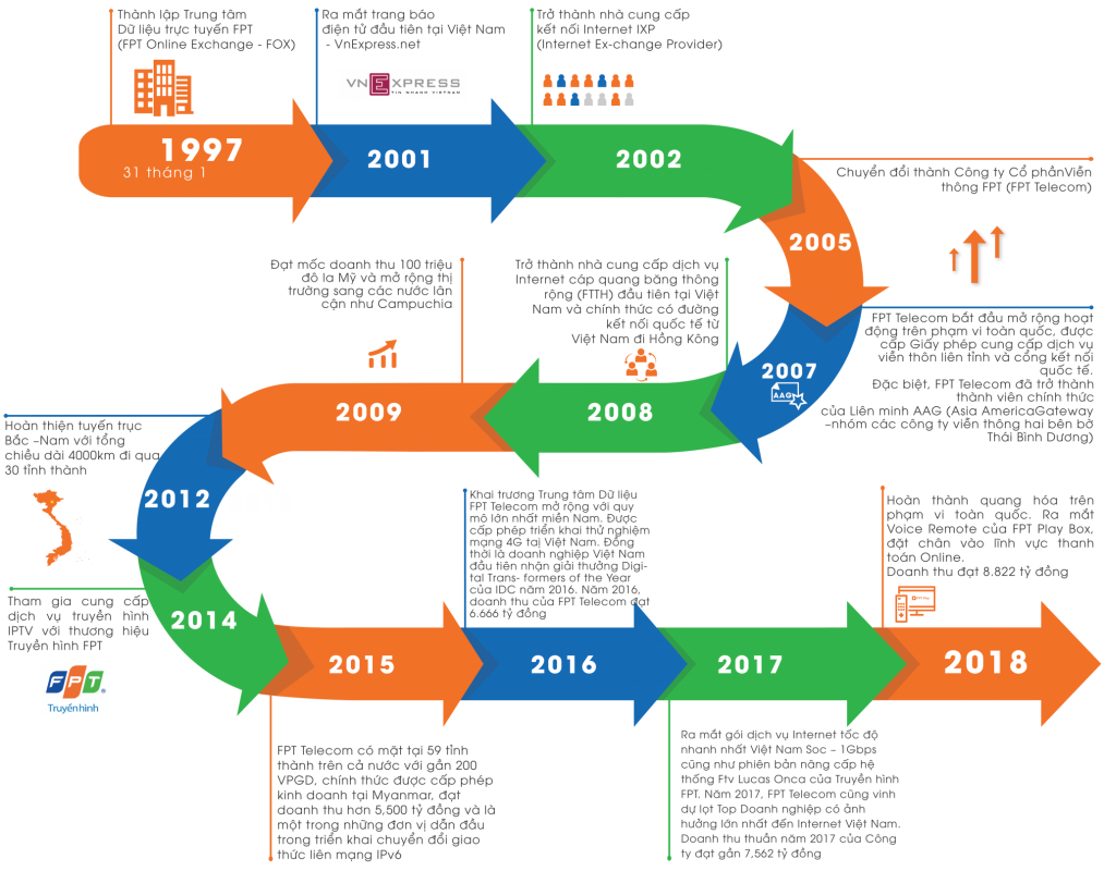 Thành lập ngày 31/01/1997, khởi nguồn từ Trung tâm Dịch vụ Trực tuyến do 4 thành viên sáng lập cùng sản phẩm mạng Internet đầu tiên của Việt Nam mang tên “Trí tuệ Việt Nam – TTVN”, sản phẩm được coi là đặt nền móng cho sự phát triển của Internet tại Việt Nam.