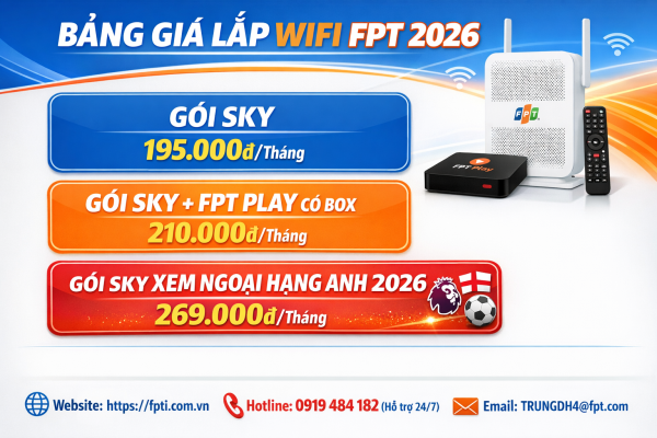 Bài viết này của FPTI.COM.VN sẽ giúp bạn cập nhật giá lắp WiFi 2026 mới nhất, đồng thời chia sẻ bảng giá các gói cước của FPT, Viettel, VNPT để bạn dễ dàng lựa chọn.